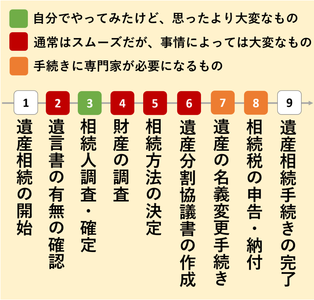 これから相続手続きを進める方にとって分かりやすく色分けしてまとめてみました。