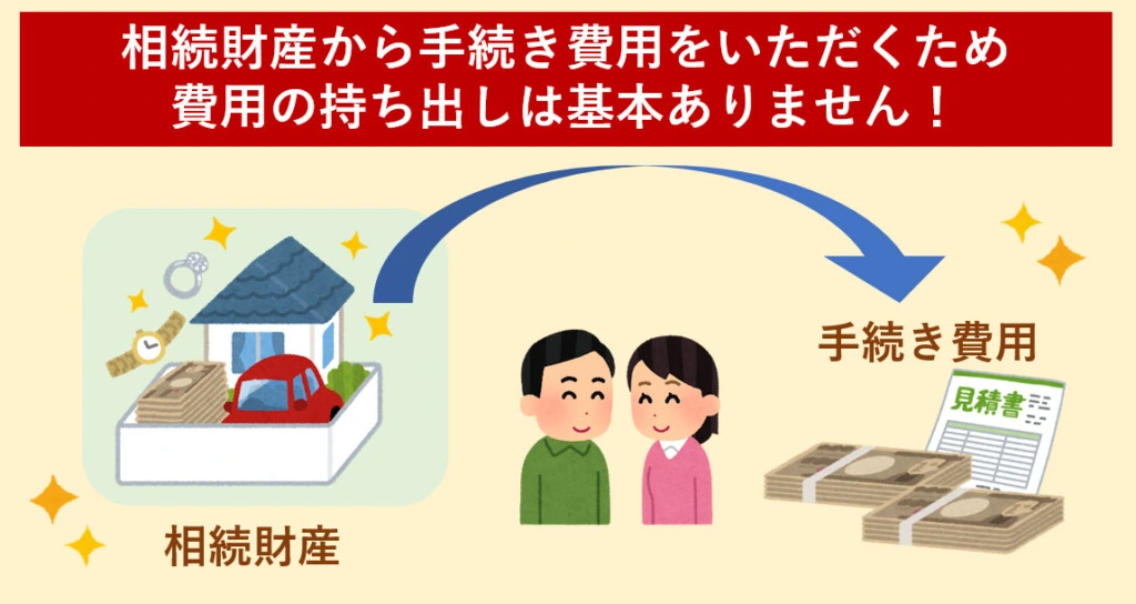 ②相続財産から手続き費用をいただくため費用の持ち出しは基本ありません!